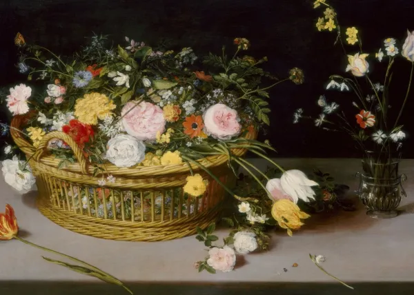 Grafika Brueghel Pieter – Jan Brueghel – Flowers in a Basket and a Vase, 1615* Art|De 500 À 999 Pièces
