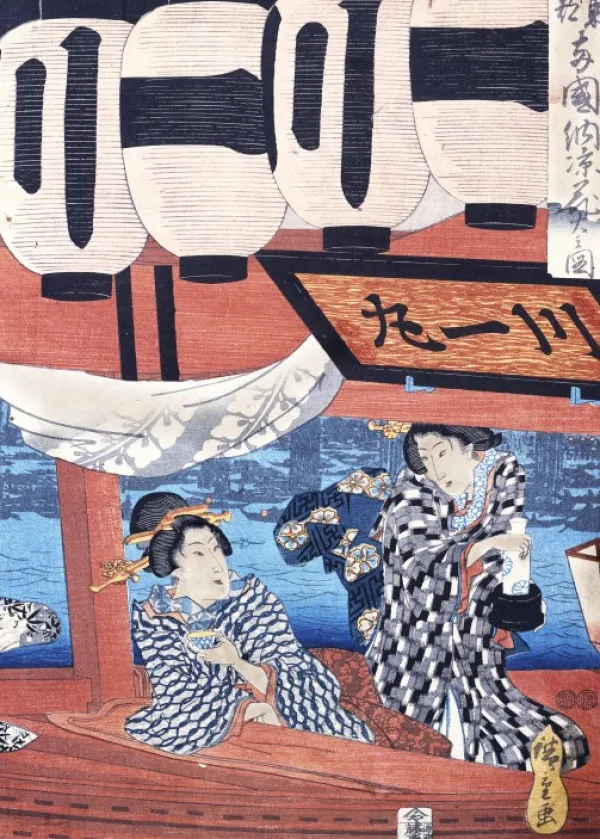 Grafika Hiroshige – Evening Cool and Fireworks at Ryogoku, 1847*Femme Pays D’Asie|Hommes Et Femmes