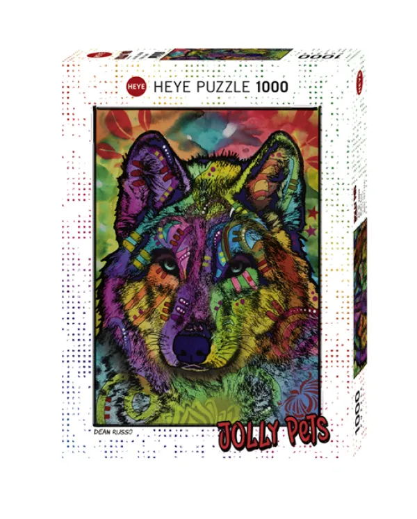Puzzle 1000 pièces. Wolf’s Soul de la marque HEYE, de la série Jolly Pets et de l’artiste Dean Russo – Dimensions du puzzle monté : 50 cm x 70 cm – Label FSC (ce label environnemental a pour but d’assurer que la production de bois ou d’un produit à base de bois respecte les procédures garantissant la gestion durable des forêts)