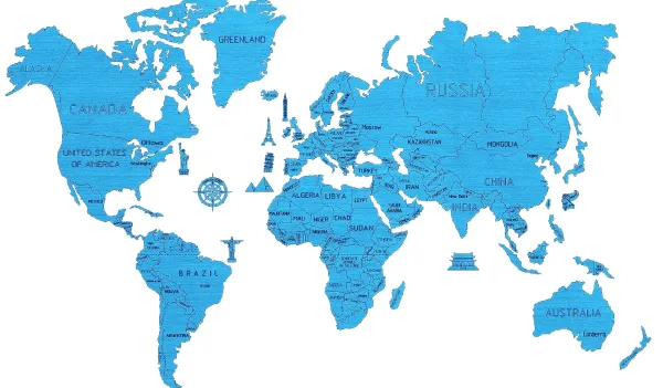 Wooden.City Puzzle en Bois – Carte du Monde XL (Cyan)* Puzzles Adultes|Déco Et Objets