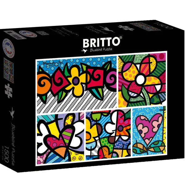 Bluebird Puzzle Romero Britto – Romero Britto – Collage: Hearts and Flowers* De 1 500 Pièces|De 1 500 Pièces