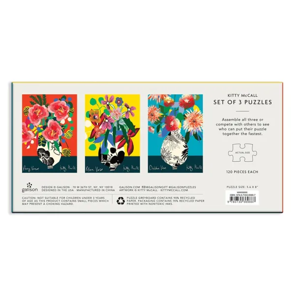• Trois puzzles de 5,5 x 8 pouces, de 120 pièces chacun