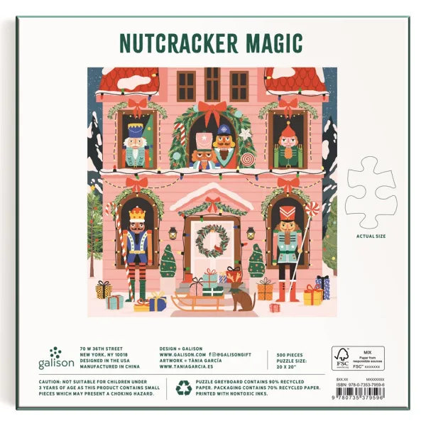 – Le carton gris des puzzles contient 90 % de papier recyclé. L’emballage contient 70 % de papier recyclé et est fabriqué de manière responsable à partir de matériaux certifiés FSC. Imprimé avec des encres non toxiques
