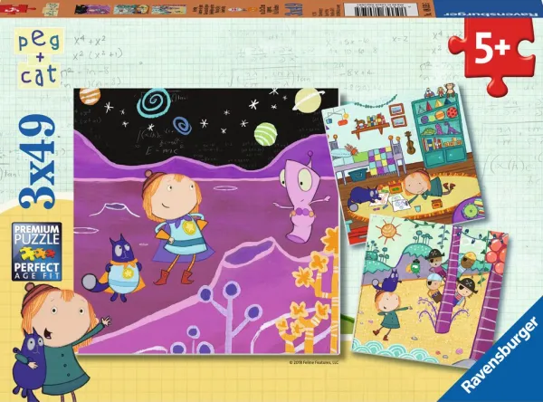 Ravensburger 3 Puzzles – Peg + Cat*Enfant Puzzles Pour Enfants|Dès 5 Ans : 31 À 49 Pièces