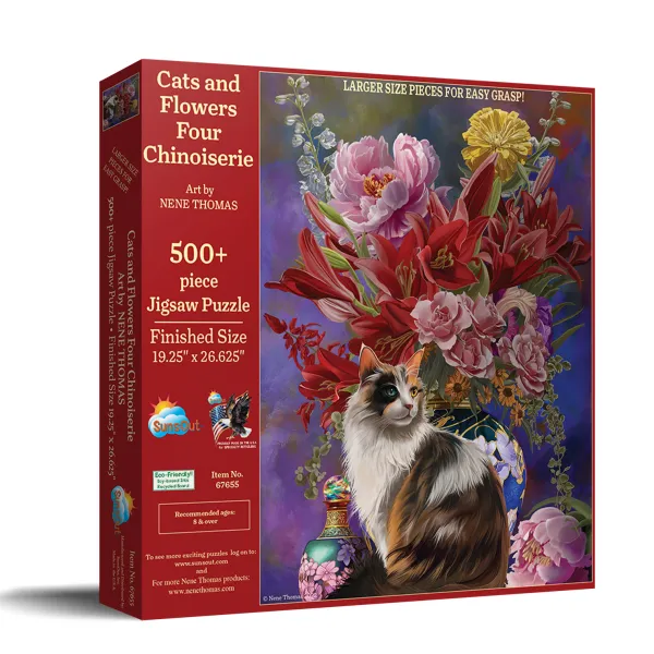 SunsOut Nene Thomas – Pièces XXL – Chat et Fleurs Asiatiques*Enfant Pays D’Asie|Chats