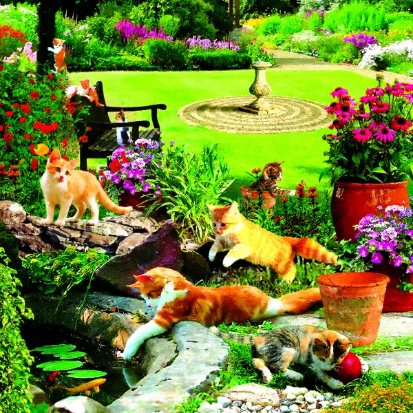 SunsOut Pièces XXL – Pêcheurs du jardin*Enfant Chats|Carré